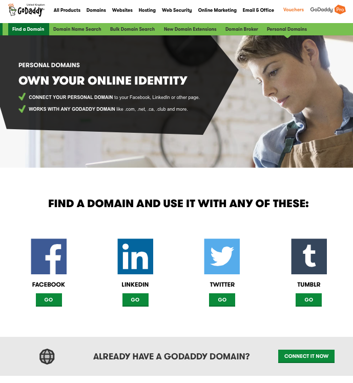 Da qualche giorno GoDaddy – azienda per la quale lavoro – ha introdotto un servizio molto semplice, ma concettualmente carino e tutto sommato utile: Personal Domains. Si tratta di associare (o puntare) un dominio verso una propria presenza social in modo da poterla raggiungere facilmente. Ritornando a LinkedIn, il mio profilo è in qualche modo equivalente al mio curriculum professionale. Ho pensato quindi di acquistare il dominio smaruzzi.info e di puntarlo direttamente alla mia pagina LinkedIn. Visto che la motivazione prevalente per andare su LinkedIn consiste nel recuperare le informazioni relative a un soggetto, il dominio con estensione .info mi è sembrato il più appropriato tra le centinaia disponibili al momento. Ho acquistato il dominio e ho provveduto ad associarlo al mio profilo LinkedIn. Ora digitando smaruzzi.info l’accesso è diretto. Nulla di sbalorditivo, ma ci può stare.
