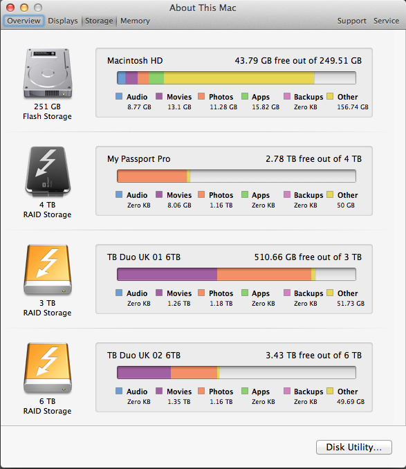 Disk spaceStrategizing on optimizations. I came to the conclusion that the best solution would have been to store on this card files I need to have with me, but not necessarily vital and indispensable. That was my generic definition of what I intended to park there. What would match that definition? Music – my Apple iTunes library – was my best answer. Currently 30GB, of personal data I could move from the SSD internal drive to a slightly less performing unit without any real impact. In addition and despite subscripting to iTunes Match, the extra room provided by the card allows me to download other thousands of purchased songs without risking to ever face a space crisis as happened before.