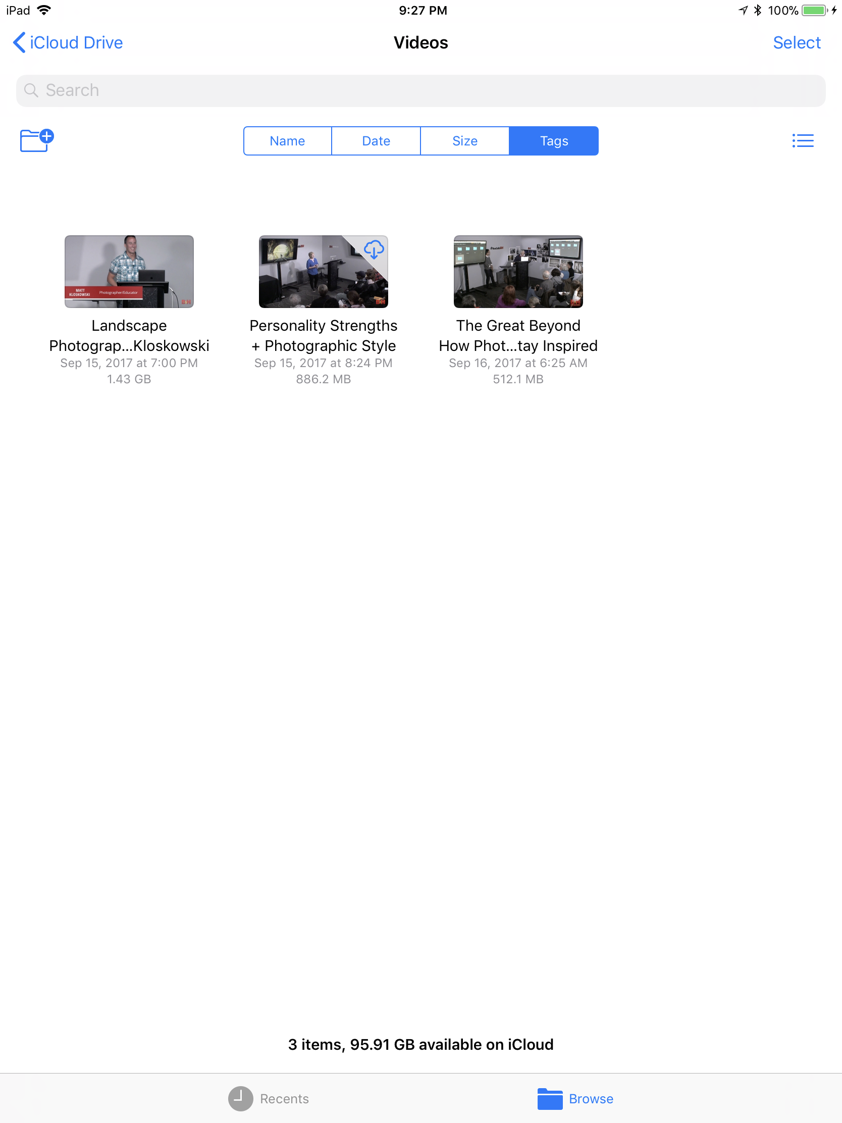 Non volendo rinunciare a guardare contenuto interessante e a gestire il mio tempo e il mio palinsesto media, sono arrivato alla conclusione di sfruttare i 200GB dio spazio di iCloud per realizzare una soluzione alternativa, ma. mio avviso molto più efficiente. Il vantaggio consiste nel visualizzare i video con titolo e immagine, rendendoli molto più gestibili e piacevoli da qualsiasi punto di vista. Lo spazio occupato sull’iPad Pro alla fine e esattamente lo stesso, con il vantaggio di un totale controllo della UI visto che vengono trattati come generici files con tutti i benefici del caso.